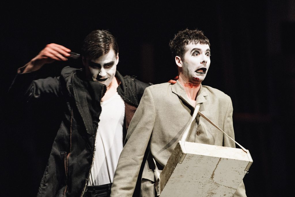 Stavljena u formu mračnog kabarea, ova predstava vam nudi uzbudljivu, duhovitu, ekspresionističku, jezivu igru punu grotesknih i prepoznatljivih tipova koji će vas nasmejati ali i učiniti da se zapitate šta se desi ako zabijemo glavu u pesak pred nadolazećim zlom.“